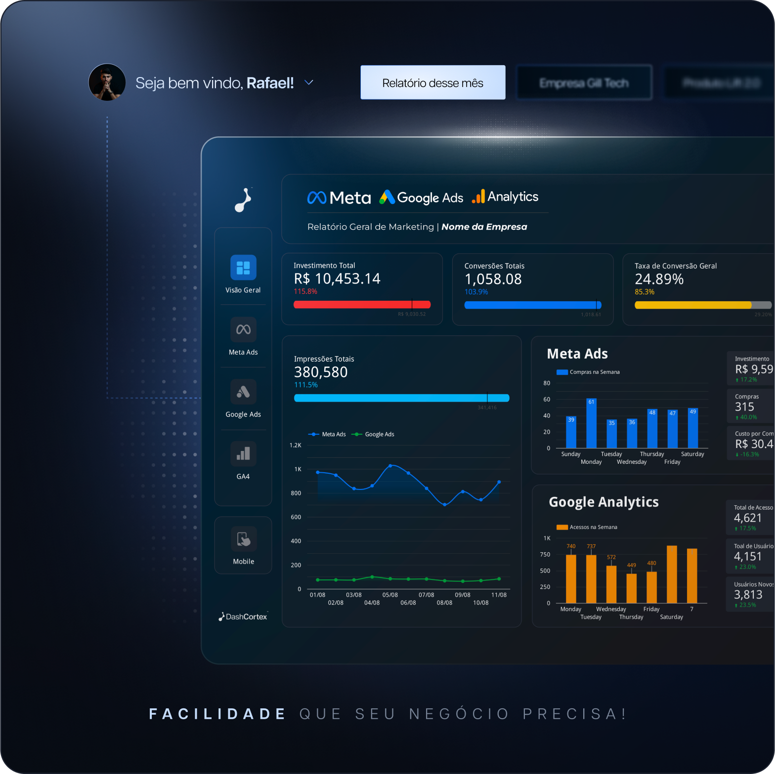 Foi analisando milhares de dados que desenvolvi a DashCortex™, uma solução de relatórios automáticos que otimiza a análise de métricas e traz credibilidade.