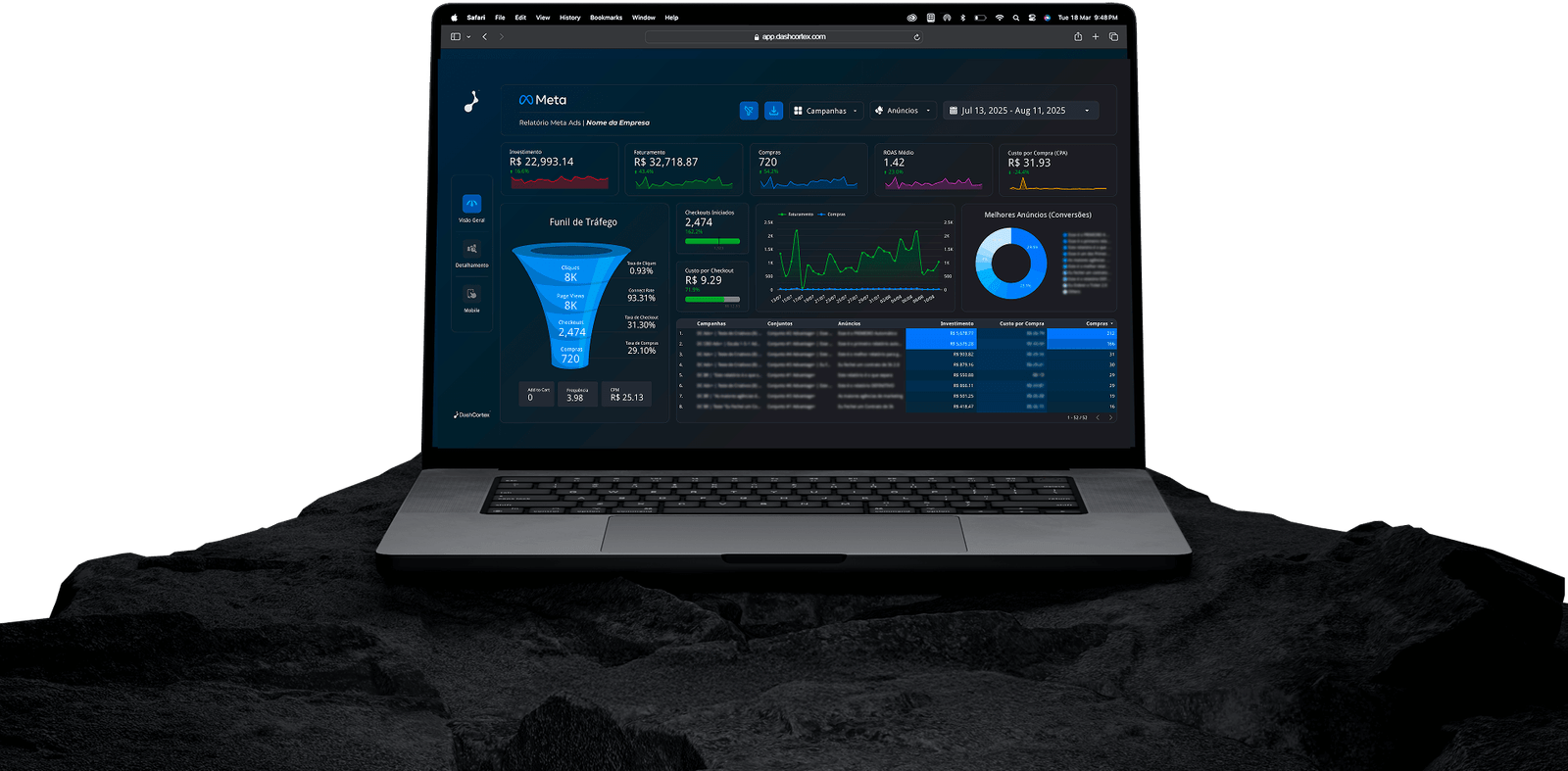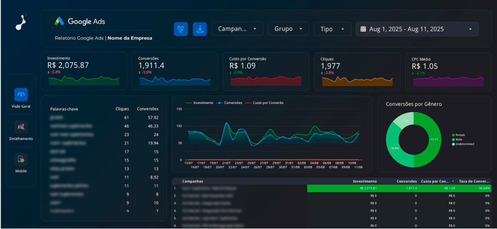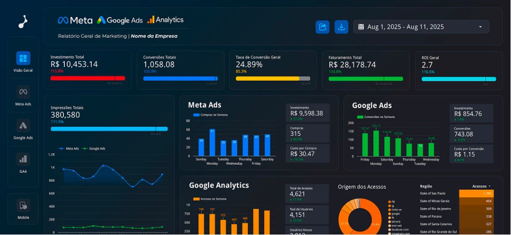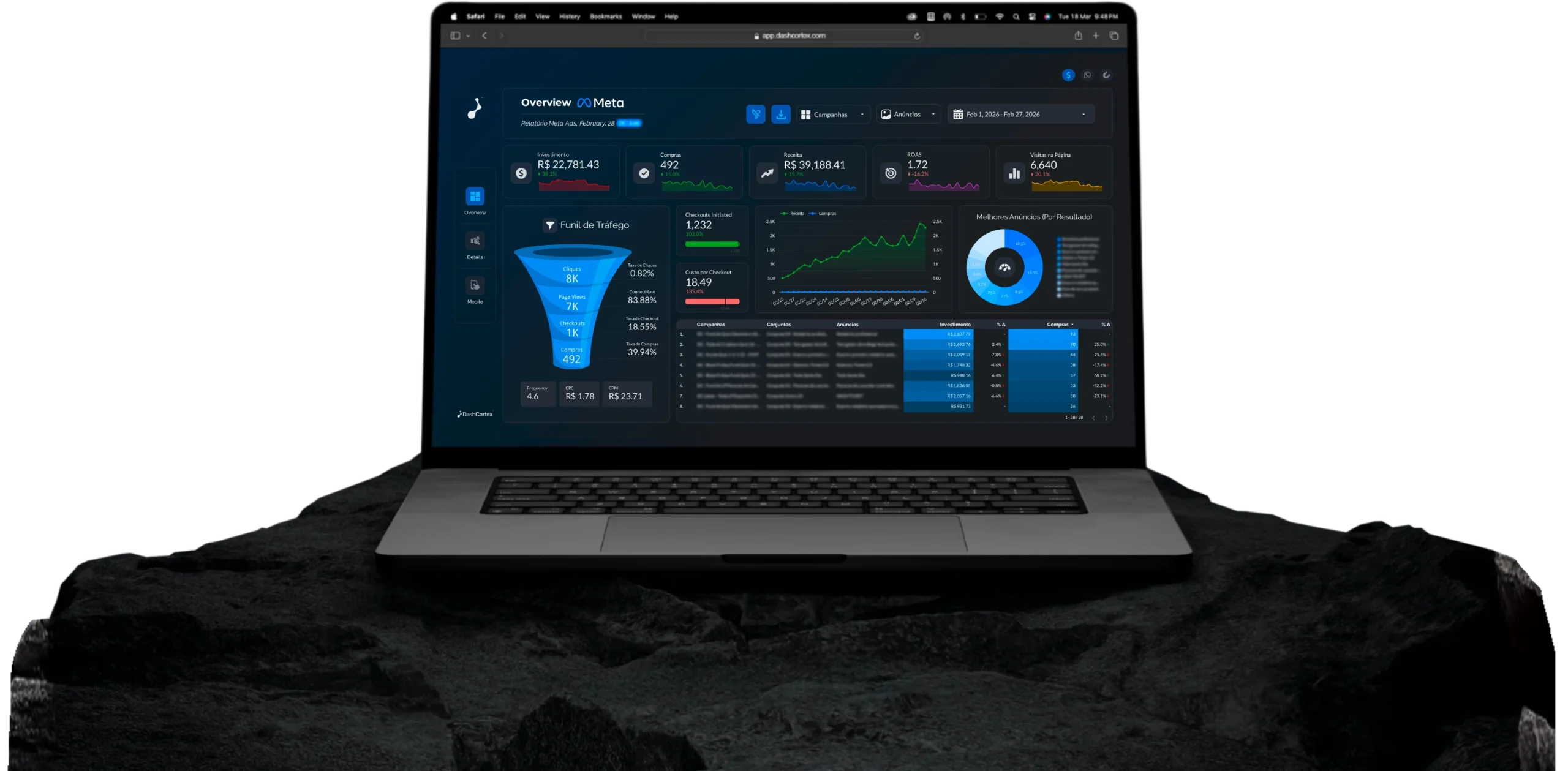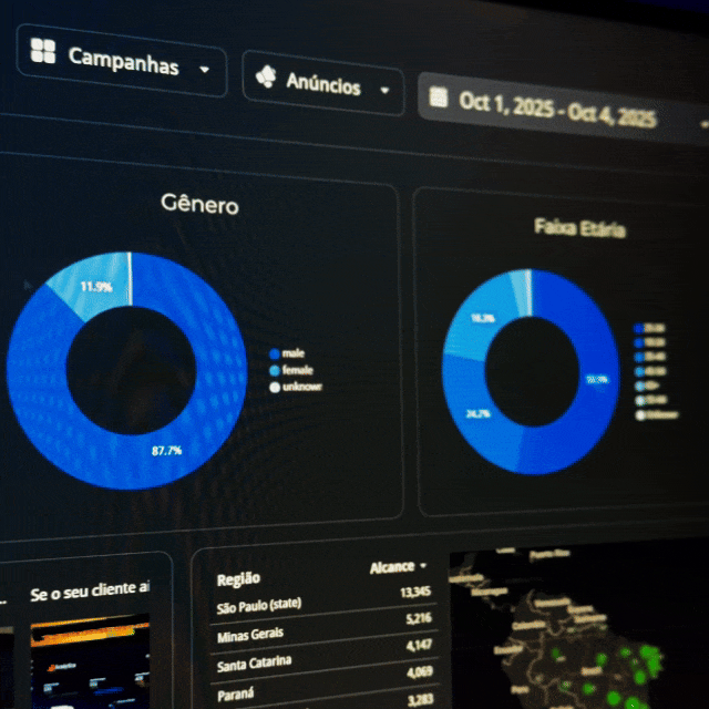 Analise campanhas e resultados no detalhe, com visual profissional e moderno.